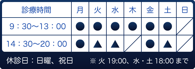 金曜日 9:00〜13:00/14:30〜20:00